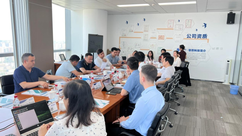 座谈会上,大禹慧图集团副总裁施林良对各位乌方友人的来访表示欢迎,详细介绍了大禹节水的发展历程和各业务板块的基本概况。大禹慧图集团规划咨询中心总经理霍宏旭讲解了公司智慧化灌区建设项目的建设成果及运行情况。