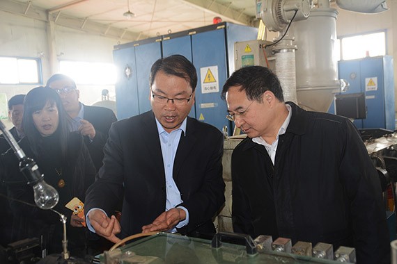傅小锋副厅长一行首先来到大禹节水集团展厅,从集团发展历程、科技创新、企业文化、荣誉资质、国际交流与考察等方面进行了全面了解,大禹节水集团发展中取得各项喜人成果获得了傅小锋副厅长一行的肯定和赞许。随后,傅小锋副厅长一行深入大禹节水(酒泉)有限公司滴灌生产车间一线实地调研,边走边看,边听边问,了解企业生产经营及科技创新和科研成果推广应用等情况,大禹节水集团副总裁徐希彬就公司产品研发及生产经营等基本情况向傅小锋副厅长一行进行了汇报介绍。