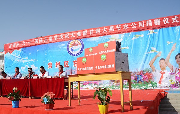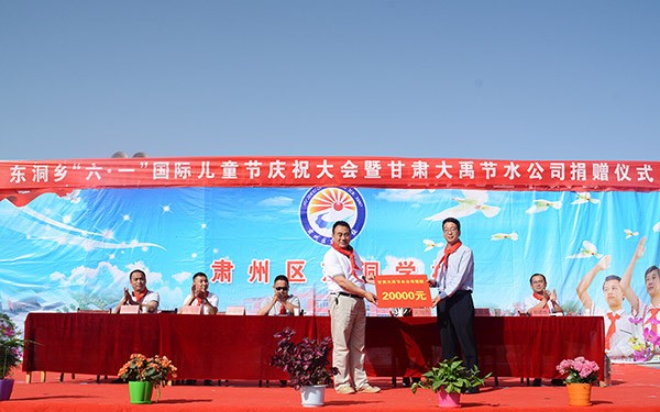 王冲指出,大禹节水集团在发展壮大同时,积极承担社会责任,先后在各类抗震救灾、扶贫济困、捐资助学、精准扶贫等公益活动中累计捐资捐物达1000多万元。连续十年为肃州区临水中心小学捐款捐物累计超过百万元,先后为肃州区"酒泉纳什-姚基金特殊教育学校"、育才小学、铧尖乡漫水滩小学等学校捐资捐物奉献爱心,积极参与酒泉当地农村教育事业的发展,关心农村孩子的成长。