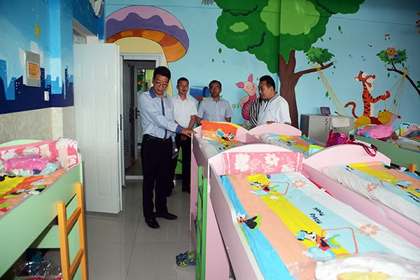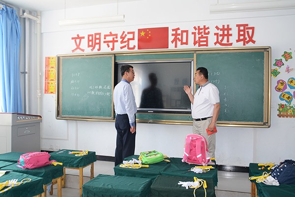 捐赠仪式结束后,大禹节水集团公司党委书记、副董事长王冲,总裁助理、团委书记巨飞雷一行在东洞乡党委书记吴海霞,党委副书记郎海斌,东洞学区主任、东洞学校校长运启业等领导陪同下还参观了东洞学?;∩枋┥璞浮?br>