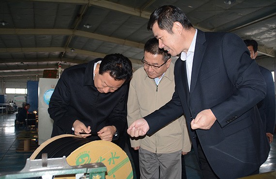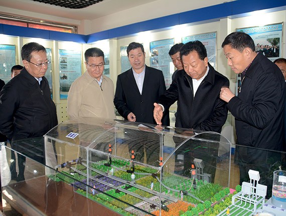 路志强检察长一行首先听取了大禹节水集团公司关于"两联系、两促进"工作开展情况;随后,路志强检察长一行来到公司展厅,详细了解了公司发展历程及荣誉资质等相关情况,并现场观摩了大禹智慧水务信息智能化灌溉系统操作演示过程;路志强检察长、康军书记及都伟市长对公司取得的发展成绩及荣获的"国家科学技术进步二等奖"、"中国质量奖提名奖"及"全国先进基层党组织"等荣誉给予充分肯定与高度评价;最后,路志强检察长一行来到公司滴灌生产车间,边走边看,并不时与公司总裁谢永生交流,详细了解公司滴灌管(带)等各类节水灌溉产品生产工艺及应用情况。