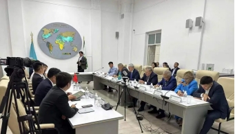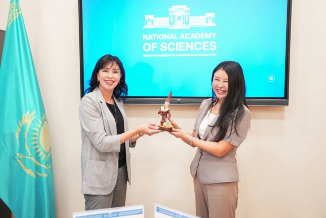 代表团应邀参访了哈萨克斯坦国家科学院,一同参访的还有中国驻阿拉木图副总领事张伟先生。哈萨克斯坦国家科学院副院长ЕРАЛИЕВА Ляззат Тасболатқызы 女士和秘书长ТОҚБЕРГЕНОВ Исмаил Тасанбиұлы先生等热情接待了参访团。