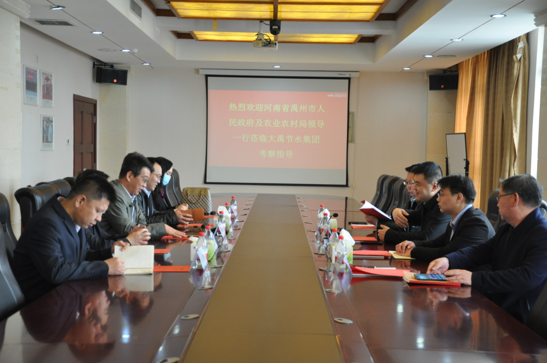 大禹节水集团党委书记王冲对禹州市政府及农业农村局一行的到来表示热烈欢迎,他表示,大禹节水经过二十一年发展和文化积淀,树立起行业品牌影响力,大禹节水要真正做到龙头企业,必须瞄准本行业顶端规划和设计,2013年大禹收购杭州市水利水利勘察设计院、2020年收购酒泉市水利水电勘察设计院,成立兰州设计院;聘请高端人才成立大禹研究院。为了使项目具备智能化信息化,收购慧图科技有限公司,打通了用水智能化信息化,使整个项目具备设计、施工运营维护管理一体化,水利上下游产业全覆盖。2016年以后,我们通过模式创新、科技创新、使企业以每年35%的业绩增长。