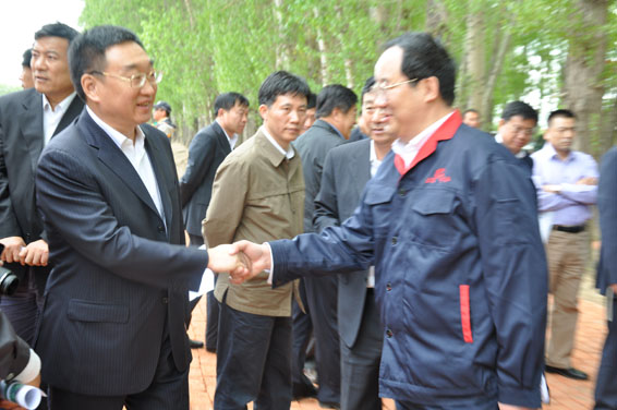 水利部部长陈雷与集团公司董事长王栋亲切握手