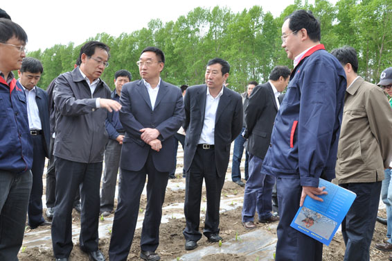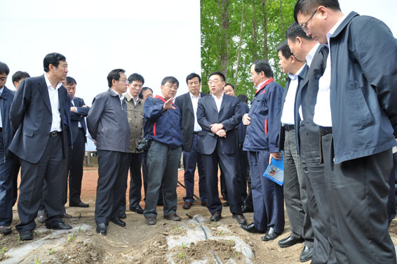 5月22日,水利部长陈雷在吉林省副省长王守臣等陪同下,到大禹节水公司吉林省农安县杨树林项目工地考察和指导工作。集团公司董事长王栋在田间向陈雷部长介绍了大禹公司以及工程项目实施情况,陈雷部长同时对大禹公司产品的性能进行了详细了解,仔细询问了项目工程中使用的滴头流量和滴灌管间距,每亩灌溉量和亩造价等,同时对大禹节水集团公司提高产品质量和技术服务提出了更高的要求。