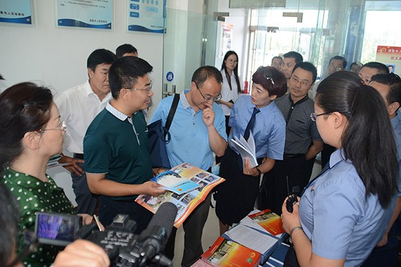 7月28日下午,最高人民检察院办公厅副处级助检员冯孝科、全国工商联法律部副部长王洪武、全国工商联法律部权益处主任科员张永利、甘肃省工商联工作部部长刘庆、甘肃省人民检察院预防处处长张泽武一行在酒泉市人民检察院检察长蒋昱程、副检察长王龙、酒泉市工商联常务副主席张永鸿、工商联副主席孙龙、酒泉市人民检察院纪检组长曹宪胜、预防处处长魏晓燕等陪同下莅临大禹节水集团就最高人民检察院、全国工商联依法保障和促进非公经济健康发展相关情况调研考察。集团公司董事长王栋、财务总监李福武、副总裁申世周及办公室主任巨飞雷等陪同调研。