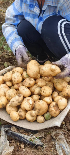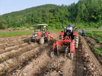 湖北省恩施土家族苗族自治州 ,地处神奇的北纬30°,森林覆盖率近70%,享有“鄂西林?!薄笆澜缥肌钡某坪?。在这片富饶的土地上,大禹种植基地正呈现出一片繁忙的景象,收割机在田间穿梭作业,机械臂忙碌挥舞,如金色珍珠般的富硒土豆破土而出,大禹新农人密切协作,分工明确,喜迎大丰收。