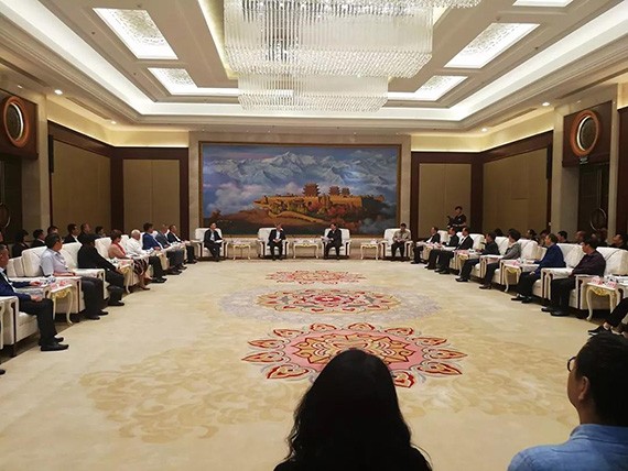 甘肃省委常委、统战部部长马廷礼会见了樊友山副主席及调研组成员一行,向参会企业家们详细介绍了甘肃的省情,并希望调研组此行能为甘肃带来发展的智慧与合作的契机。甘肃省委统战部副部长、省工商联党组书记赵少智,甘肃省工商联副主席柴绍豪等领导参加座谈。大禹节水集团公司党委书记、副董事长王冲作为调研组成员出席见面座谈会。