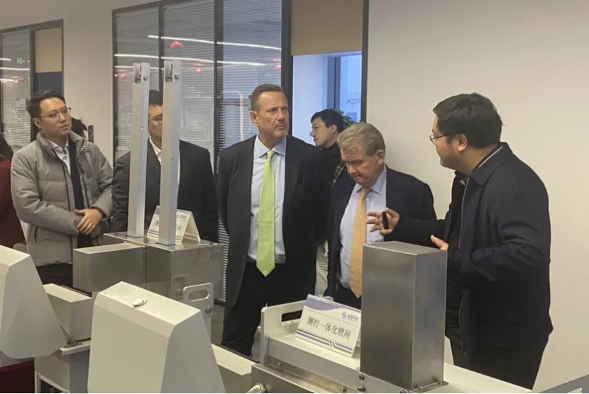 在大禹节水集团北京研发中心展厅,集团董事长王浩宇详细介绍了公司的发展历程、战略布局以及科技创新成果等方面。在大禹慧图科技集团展厅,Will Tricks先生一行详细了解了大禹智慧水利解决方案和产品的技术优势,观看了实际应用成果展示。