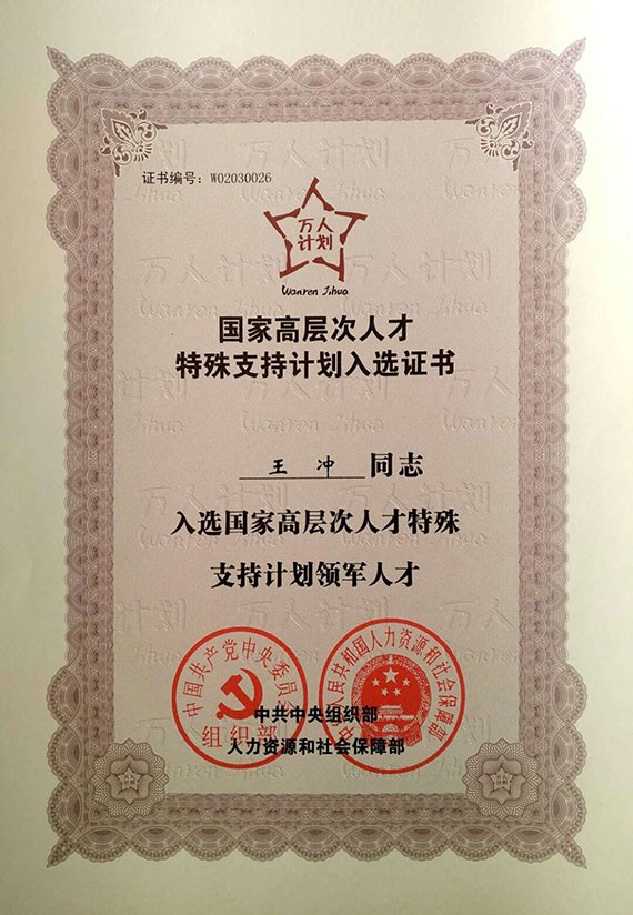 大禹荣耀|集团公司党委书记王冲获颁国家高层次人才特殊支持计划领军人才证书