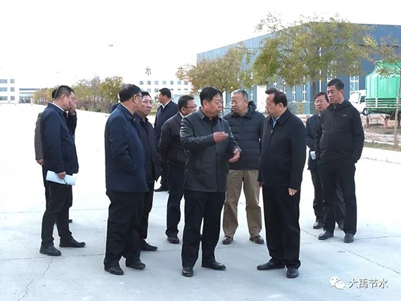 11月5日,武威市委书记柳鹏,市委副书记、市长周伟,凉州区委书记洪元涛,区委副书记、区长朱星海及市区国土局、发改局、城建局、住建局、工信局、安监局等部门主要领导莅临大禹节水武威公司考察调研。武威新能源装备制造产业园党工委书记张树庚及园区各部门主要领导,武威公司董事长王立军、副总经理贺海军、总经理助理盛世权等陪同调研。