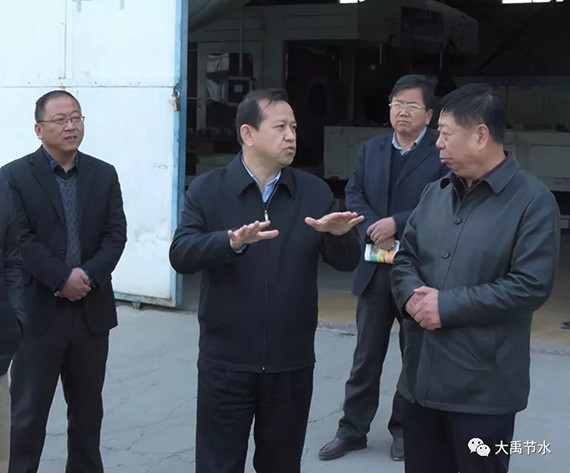 调研结束后,柳鹏表示,在全国经济下行的大环境下,大禹节水武威公司作为武威市重点企业,为武威市经济的发展做出了贡献。武威经济的发展要取得重大突破,必须要“抓项目、扩投资、调结构、稳增长、做大经济总量、做优发展质量”,要大力引进像大禹节水这样“专精特新”的企业,武威市区两级政府要积极配合支持,出主意、想办法,主动帮助企业解决前期工作中出现的一系列困难和问题,以一流的工作效率和优良的工作作风支持企业工作顺利开展,进一步推动我市民营企业的协调发展,落实好习总书记11月1日在民营企业座谈会上的重要讲话精神。柳书记指出,武威市是西部重度缺水地区之一,节水工程是加快实施工业强市战略的重要举措,是构建武威市新型工业化体系的重要组成部分,必须实现重大突破。节水工程惠及民生,大禹公司组织实施的节水灌溉项目取得了良好的效果,给农民带来了实惠,大大提高了农民的收入,为武威建设生态大市,造福子孙后代做出了应有的贡献。要求大禹节水公司不断加快项目建设速度,同时在经济下行的大环境下要做好长远规划,为企业下一步发展夯实基础。