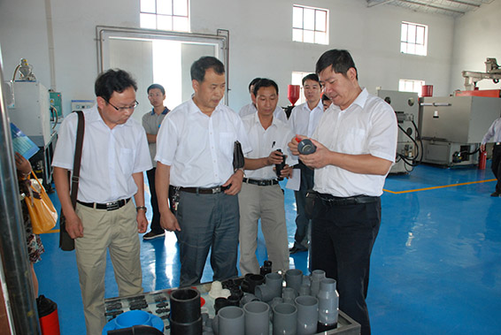 大禹节水集团总裁谢永生向王丁宏教授一行介绍公司研发生产的各类管件产品