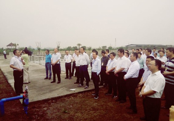 会前,与会领导及有关负责人先后参观了广汉和兴镇华严村农田水利设施使用权抵押融资试点、梅家堰水库综合治理投融资模式改革试点,现场重点考察了由大禹节水参与实施的广汉市西外乡竹木村社会资本兴修水利及灌溉合作社建设试点项目。在竹木村试点项目,与会领导现场观摩了大禹节水公司在广汉市田园阳光生态园示范基地智能化控制、首部水肥一体化过滤及施肥系统装置及演示过程,并详细询问了智能化系统产品的性能及功用,受到与会人员一致好评。该试点由种植合作社和农户共同组建灌溉合作社,提供供水,工程管养维护服务。在扶持新型农业经营主体发展同时,也培育了农田水利社会化管养服务组织,增加了群众收益。