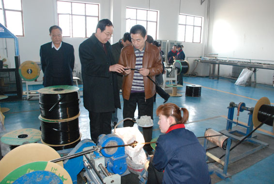 在公司滴灌车间詹市长一行详细了解了滴灌管的生产流程