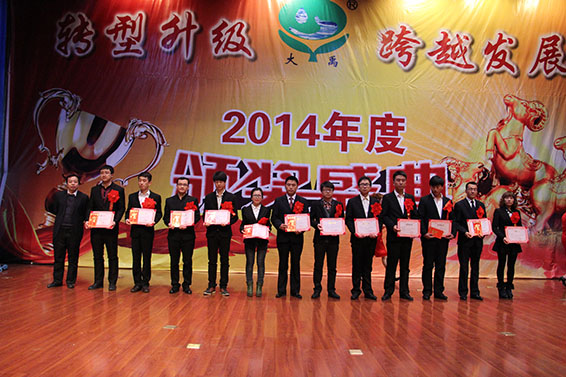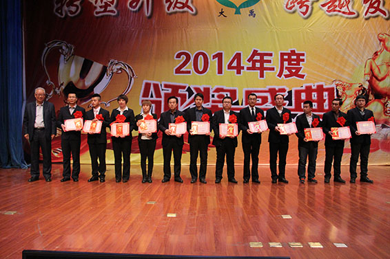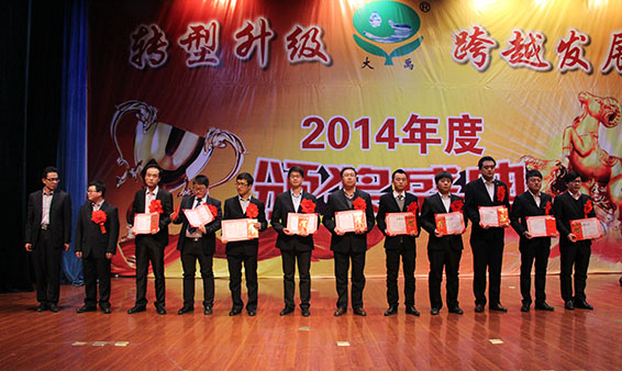 评选先进、表彰优秀,是大禹节水集团每年年末岁初的盛事,它既是对集团过去一年骄人战绩的集中展示和总结回顾;更是对新一年再创辉煌的思想动员和战前准备。2014年全体大禹人克服困难、不懈努力,使销售订单任务圆满完成,公司质量品牌影响力得到显著提升,各项工作取得了长足发展。为了褒奖在过去一年中做出突出贡献的先进集体和个人,集团公司设立了先进生产(工作)者、优秀大学生、先进部门、先进班组、优秀项目经理、优秀分包商、好学上进、销售明星、利润增长、技术创新、管理创新、销售状元、特殊贡献等十余个奖项,重点奖励为大禹做出突出贡献的优秀员工和先进团队。