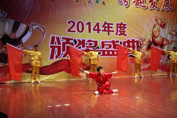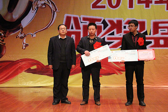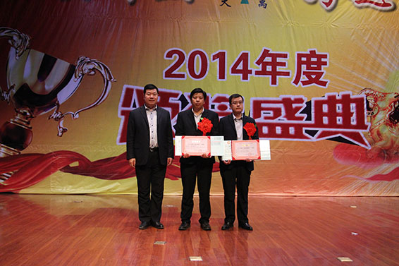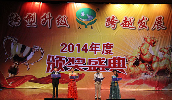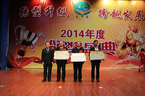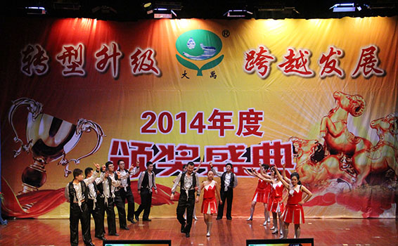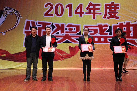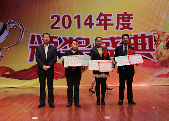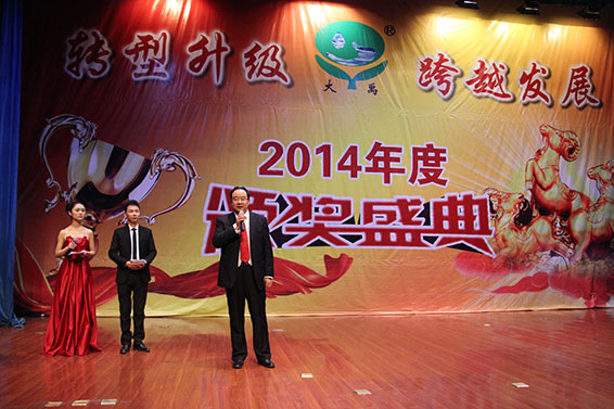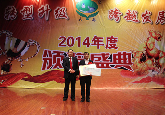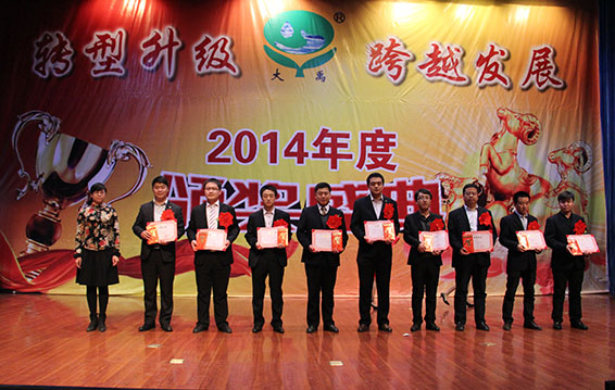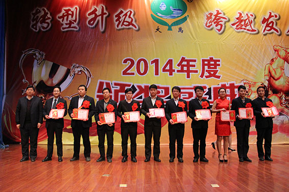 集团公司副总裁刘伟芳为销售明星颁奖,公司给予他们的颁奖词是:市场有域心无界,2014年的销售竞技场上,在销售这没有硝烟的争夺战中,他们奋力争先,勇立潮头,再摘桂冠,创造出骄人的业绩。面对日趋激烈的竞争,他们迎难而上、锲而不舍、力争上游,不断尝试新方法、积极开拓新的渠道,寻找新的业绩增长点,不断树立和提升大禹品牌的知名度和美誉度。他们用实实在在的销售数据再次向团队证明,他们是当之无愧的销售明星。