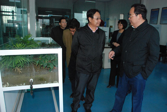项目验收专家组一行在集团公司董事长王栋、酒泉公司总经理刘伟芳的陪同下在公司实验室参观考察