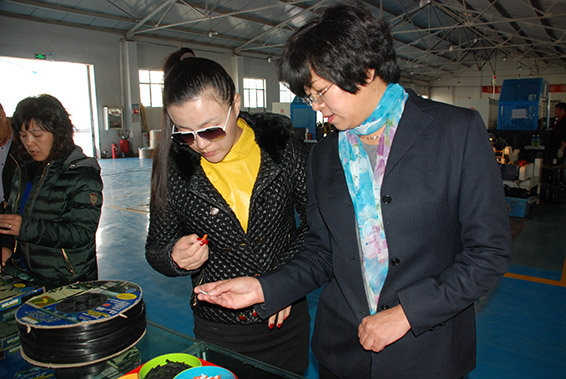 王诗沂大使在大禹节水酒泉公司管件车间了解公司研发生产的过滤器及管件产品