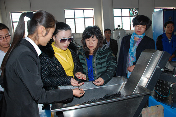 王诗沂大使在大禹节水酒泉公司滴灌车间了解滴灌管(带)生产工艺