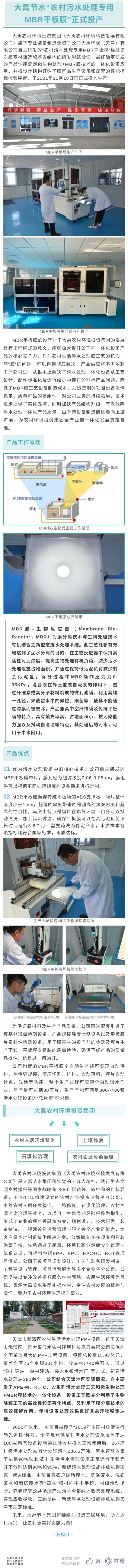 大禹发布| 大禹农村环境投资集团自主研发“农村污水处理专用MBR平板膜”正式投产