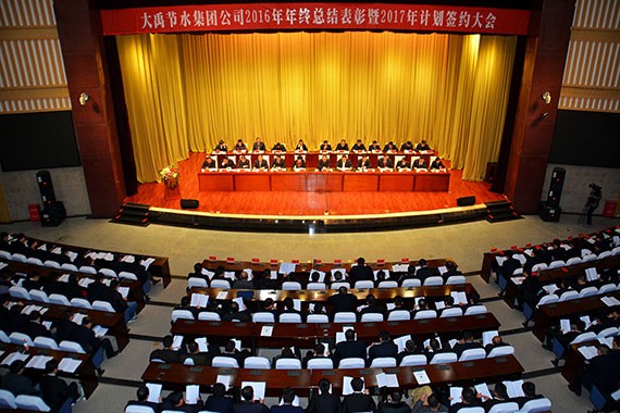 酒泉市委副书记、市长都伟代表市委市政府向大禹节水集团公司全体干部职工表示亲切问候,向圆满完成2016年度计划目标任务受到表彰奖励的先进集体和个人表示热烈的祝贺,并做重要讲话,对大禹节水在过去一年中的发展成绩及为全市经济社会发展做出的卓越成绩给予充分肯定,并围绕2017年工作提出三点殷切希望:一是进一步抓住机遇,紧盯市场,全力抓好公司主营业务发展,继续做大做强,要紧紧扎根酒泉、奉献甘肃、辐射全国,放眼世界,专注节水灌溉产业,打造世界节水灌溉行业知名企业,为全市加快转型跨越式发展做出新的贡献;二是进一步重视科技兴企,认真抓好品牌战略实施。以打造世界知名节水品牌为目标,紧盯世界节水技术前沿,大力提高自主创新能力,积极推进"科技兴企、人才强企"战略,大力培养和引进高端人才,加强企业文化建设,以品牌占领市场,以科技创新提升企业核心竞争力;三是进一步加快国际节水产业园建设进度,积极协调各方资源,加强与国际节水企业交流,筑巢引凤,加快项目落地。切实加强企业内部管理,不断完善法人治理结构,充分发挥好公司董事会、监事会、股东大会的作用,本着对企业负责,对股民负责,对社会负责的态度,力求做到科学管理,规范运行。