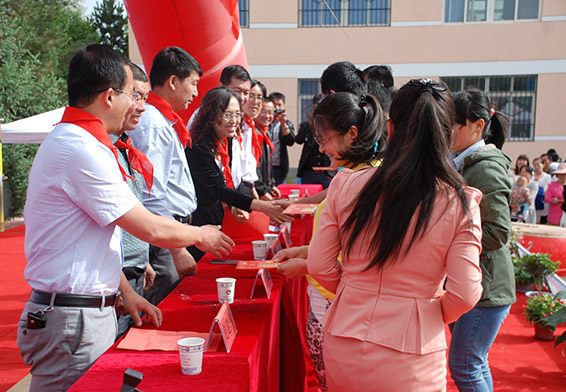 2015年“六一’国际儿童节之际,大禹集团公司总裁谢永生、副总裁仇玲、团委书记巨飞雷等一行,带着大禹人的温暖来到酒泉临水中心小学,为10名教书育人、爱岗敬业、默默奉献的优秀教师颁发大禹奖学金并捐赠体育器材和活动用品,与师生共度六一国际儿童节。