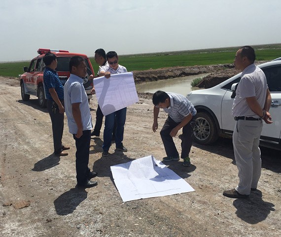国庆中秋双节期间,阿克苏市兵团农一师六团丁副团长、11连贺连长、11连杨政委及监理单位刘总监等领导到新疆公司阿克苏以色列贷款农田水利建设项目施工现场检查指导工作