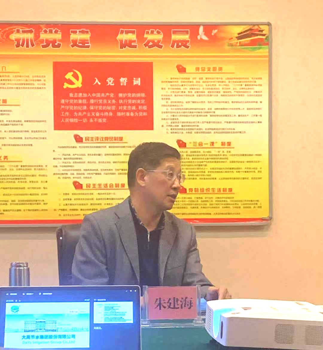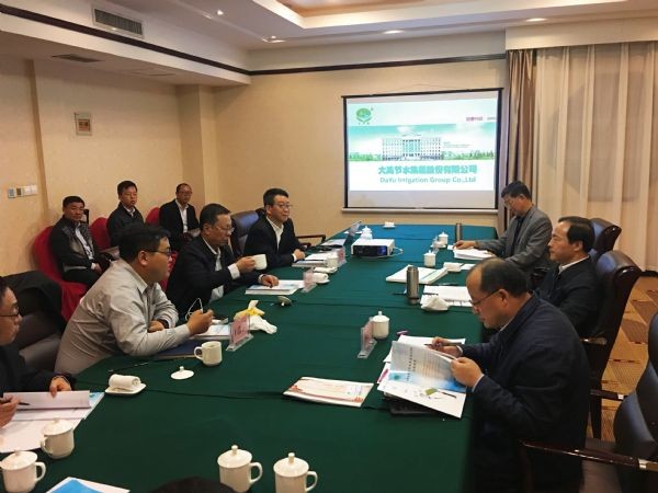 董事长王浩宇就公司目前的经营情况进行了详细汇报,并对节水行业现代化发展的模式:构建基础设施网、水利信息网、运营服务网三为一体的建、管、服体系进行了全面阐述,对公司近些年来探索成功的水权分配、水权交易、节水激励、精准补贴等一批可复制可推广的陆良模式、元谋模式、武清模式、通辽模式、沙雅模式、荣昌模式进行了全方位的介绍。同时,指出,大禹节水业务覆盖全国各省市,作为甘肃本地的企业,公司有义务也有能力为家乡的节水事业做出应有的贡献。