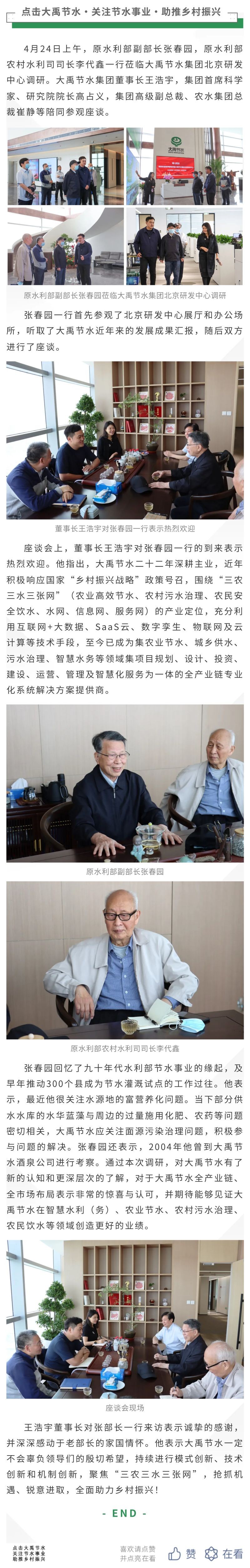 大禹动态| 原水利部副部长张春园一行莅临大禹节水北京研发中心考察调研