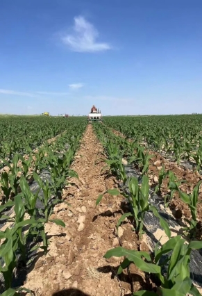 宁夏同心基地目前以玉米为主要种植作物,部分土地采用大豆套种玉米的模式。在籽粒玉米播种过程中,使用气吸式精量播种机,能够一次性完成开沟、施肥、播种、铺设滴灌带、覆土、镇压等多道工序,实现种肥同下,确保单穴单粒的播种效果,显著提升作业精度和效率。2024年5月,所有作物的播种工作已全面完成,且作物生长态势表现良好。经过对现有作物生长状况的综合分析,预测每亩地产量将较传统种植方式增产约300斤左右。