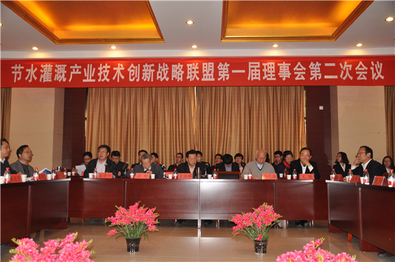 会议由节水灌溉产业技术创新战略联盟副理事长、中国农业节水和农村供水技术协会常务副会长李代鑫主持,水利部原副部长、中国农业节水和农村供水技术协会会长翟浩辉,中国工程院院士、武汉大学茆智教授,中国工程院院士、中国农业大学康绍忠教授,水利部科技推广中心武文相主任、西北农林科技大学副校长吴普特,联盟理事长、大禹节水集团公司董事长王栋,副董事长王冲等出席会议。