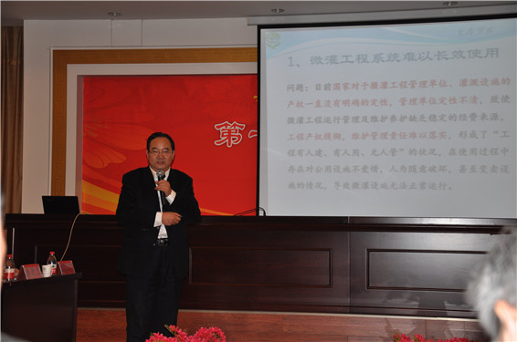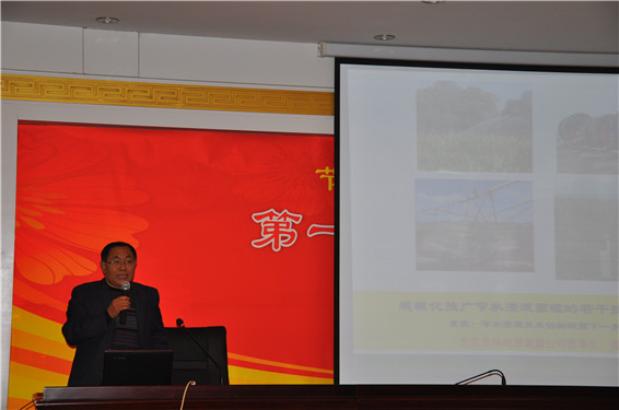 北京美林地景灌溉科技有限公司周荣董事长在论坛上做了《高效节水灌溉产业大规模发展中亟待解决的政策、技术问题探讨》的报告