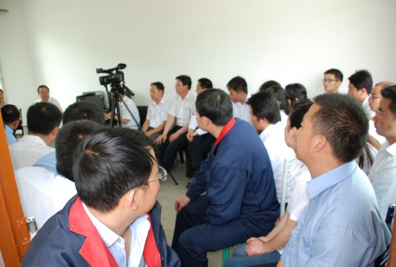 刚刚结束大禹节水陕西公司建成投产开业庆典仪式后,大禹节水集团公司党委书记、董事长王栋、副董事长王冲组织在陕参加仪式的干部职工召开临时会议