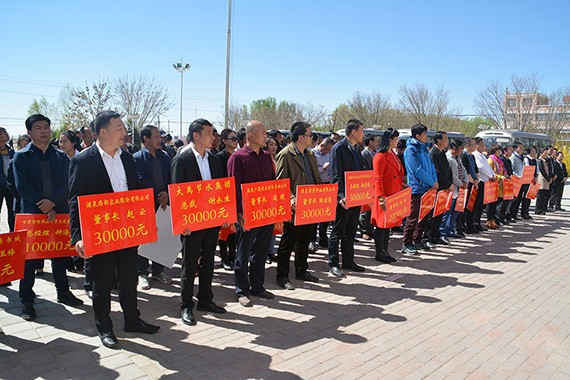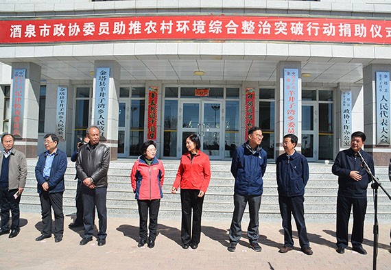 4月21日,大禹节水集团为酒泉市肃州区黄泥堡裕固族乡黄泥堡村捐赠了长度4000米、价值5万元的绿化灌溉用水管道,在"酒泉市政协委员助推金塔农村环境综合整治突破行动捐助仪式"上捐款3万元,积极参与酒泉市农村环境综合整治行动。
