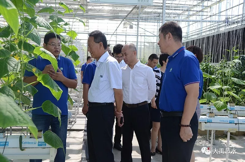 签约仪式前,永定河流域投资有限公司总经理康学增一行在总裁谢永生、副总裁兼天津公司董事长张雷云、研究院常务副院长王一文等公司领导陪同下前往武清项目参观考察。康学增一行通过项目展板介绍和现场运营的污水处理设备,详细了解了污水处理原理及处理后的水质达标情况。项目现场参观考察结束后,在公司展厅和智慧生态农业示范园了解了公司发展历程和智慧农业发展情况。