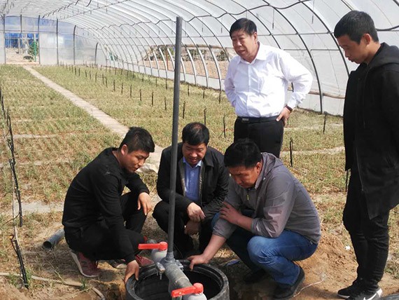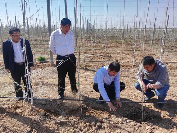 座谈结束后,在利通区建管站站长杨文贤的陪同下,集团公司总裁谢永生一行先后到金银滩、五里坡及扁担沟等项目区进行了实地考察,现场查看了项目区灌溉基础设施及其应用情况,听取了项目区有关负责人关于项目区情况的介绍。