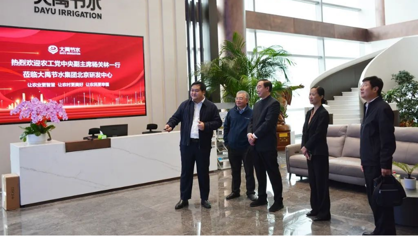 10月12日,全国人大教科文卫委副主任委员、农工党中央专职副主席杨关林一行莅临大禹节水集团北京研发中心调研指导,农工党中央绿色发展工作委员会副主任、大禹节水集团董事长王浩宇等陪同调研。此次调研重点了解了大禹节水集团发展状况,并围绕举办中国节水论坛和参与定点帮扶工作开展座谈交流。
