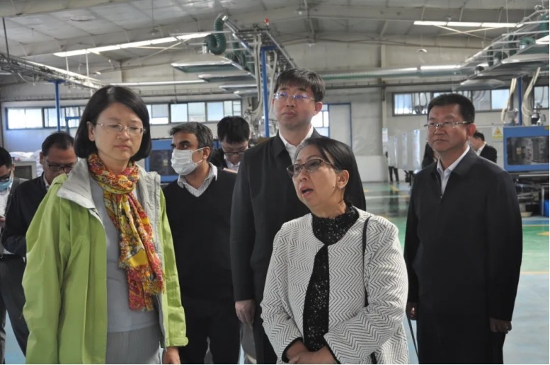 大禹农水集团酒泉公司总经理张琴、国际事业部产品电商部负责人罗尚杰等对大使一行的到来表示热烈欢迎,并陪同参观了公司的展厅和智能节水装备制造基地。