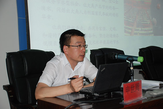 设计院主任王先飞就节水灌溉工程设计为新报到大学生做了培训