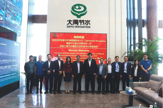 2024年9月25日,老挝自然资源与环境部副部长查特奈特·布阿拉法率团在长江水利委员会澜湄水资源合作中心副主任罗祥生、工程师石昕颜的陪同下莅临大禹节水集团北京研发中心考察调研。大禹节水集团董事长王浩宇、高级副总裁崔静、大禹慧图集团副总裁兼总工程师唐宗仁等陪同考察。