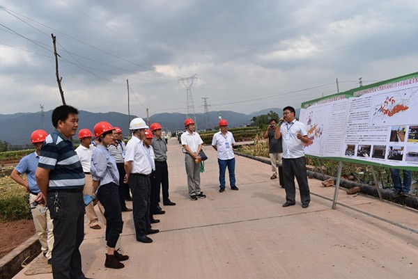 座谈会后,调研组先后到清河社区、瓦渣箐移民安置点及禾阳村等施工现场进行实地调研,现场查看了项目介绍展板和图示等相关资料,认真听取了元谋县及元谋大禹节水公司相关负责人就项目基本情况的介绍。