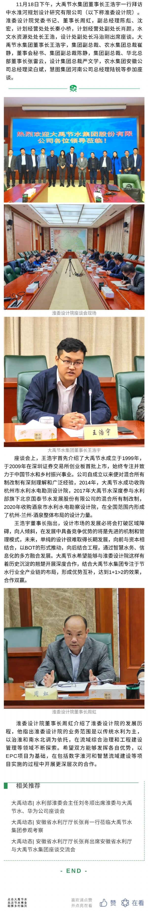 大禹动态| 大禹节水与中水淮河规划设计院就双方深化合作召开座谈会