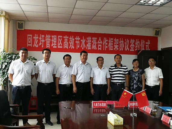 9月12日,大禹节水集团股份有限公司和湖南省永州市回龙圩管理区高效节水合作框架协议签约仪式在回龙圩管理区会议室举行?;亓坠芾砬N⒒亓坠芾砬榧钦晕耐痛笥斫谒殴咀懿眯挥郎谝鞘缴戏直鹬麓?,回龙圩管理区主任刘功文与大禹集团公司总裁谢永生代表双方签订了合作协议。