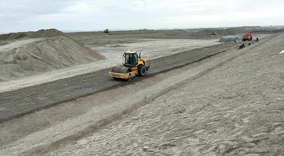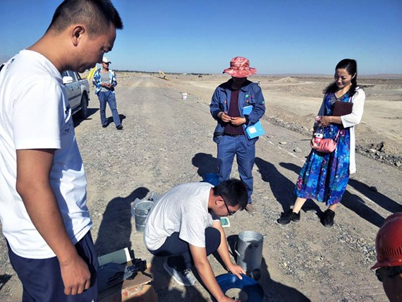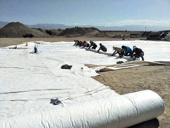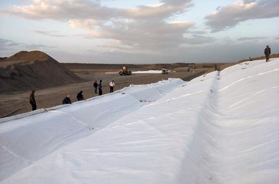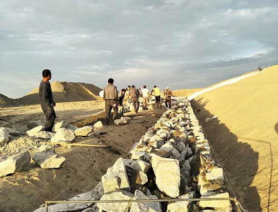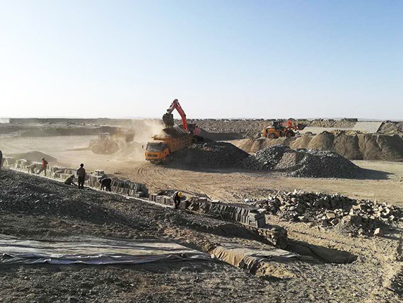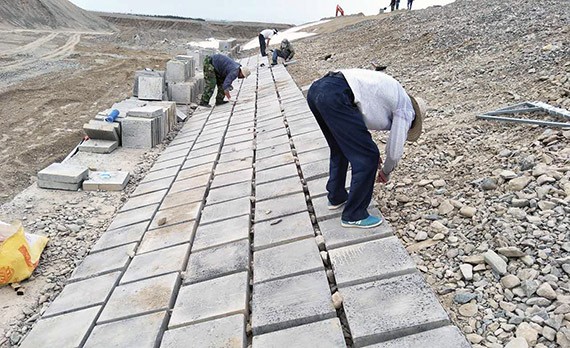 阿克塞抗旱应急调蓄水库工程从6月10日开工,通过三个半月的紧张施工,截止9月25日,共计完成坝基清理外运9.8万m?,库底清理外运23.9万m?,砂砾石开挖外运43万m?,坝体夯填18万m?,混凝土预制砖完成4400m?,进出水口管道焊接616m,垫层15000m?,细沙?;ち掀讨?166.59 m?,库底筛分细砂保护料24000 m?,防渗膜铺设63000㎡,完成供电设施77.7万元,其他临时建筑47.8万元。目前坝体夯填及库底清理、砂砾石开挖外运、坝体土工膜铺设及垫层料铺筑已全部完成,预制砖衬砌2000m?,共计完成投资2661.98万元,预制砖衬砌及库底土工膜铺设工作正在抓紧进行。