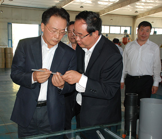 中国农业发展银行党委书记、行长郑晖在公司滴灌车间了解各类管件产品