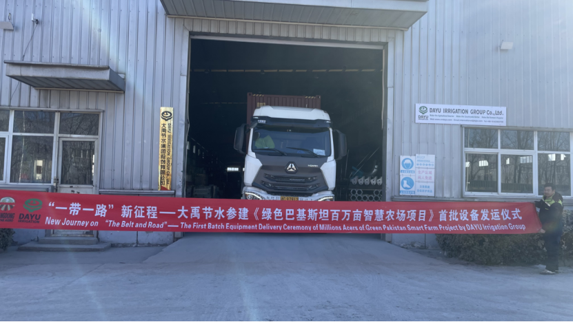1月23日,大禹节水集团参建的《绿色巴基斯坦百万英亩智慧农场项目》首批设备完成装箱起运。大禹巴基斯坦独家经销商总裁与大禹节水国际事业部副总经理符帅先生参加本次发运仪式。