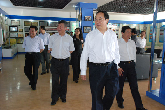 中国灌溉排水发展中心副主任闫冠宇一行在集团公司董事长王栋的陪同下在公司展厅参观