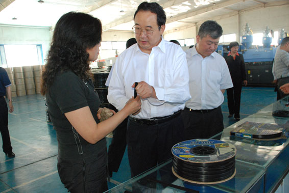 集团公司董事长王栋、闫冠宇主任及王晓玲处长在车间亲切交谈