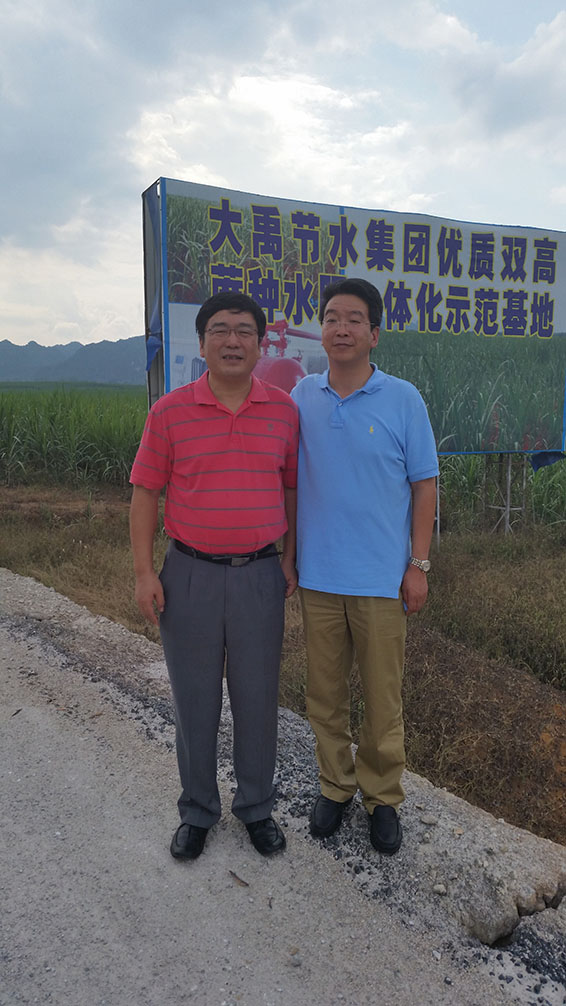 集团公司副董事长王冲与中成集团副总经理韩宏在大禹节水集团优质双高蔗种水肥一体化示范基地合影